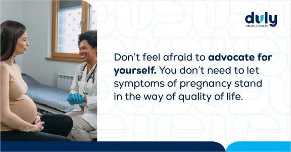 Don’t feel afraid to advocate for yourself. You don’t need to let symptoms of pregnancy stand in the way of quality of life.