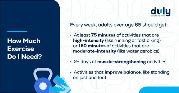 If you’re used to intense and vigorous activities like hiking or running — but it’s no longer right for you — you don’t need to completely give up on exercise. Switch to moderate-intensity exercises, like brisk walking or water aerobics. Trade bench presses for low-impact strength training exercises like squats or climbing stairs.