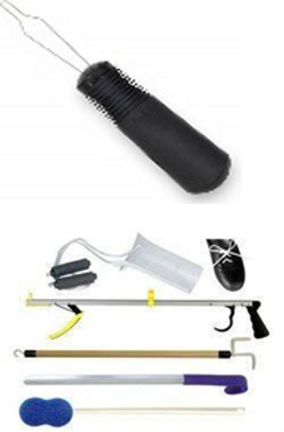 Sock aides, grabbers, long-handled shoehorns, long-handled sponges and button hooks reduce the need to bend, twist and use affected fine motor skills.  |