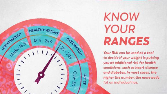 Your body mass index (BMI) is a broad way to help determine if you are at a healthy weight for your height. Your BMI can be used as a tool to decide if your weight is putting you at additional risk for health conditions, such as heart disease and diabetes.