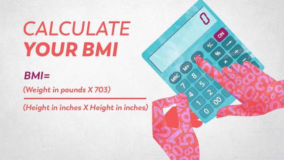 BMI = (Weight in pounds x 703)/(Height in inches x Height in inches)