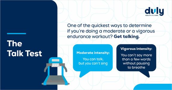 Endurance (“cardio” or “aerobic” exercise) increases your breathing and heart rate. It keeps your heart and lungs healthy and can help you lose or maintain weight, manage blood sugar, and improve overall fitness. An endurance exercise can be categorized as either moderate- or vigorous-intensity, depending on how hard your body works while doing it.