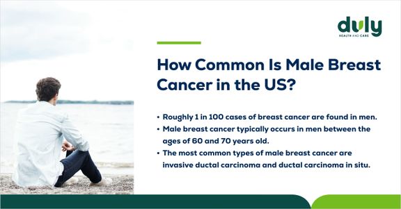 Men are also more likely to develop two specific kinds of breast cancer: invasive ductal carcinoma and ductal carcinoma in situ. Invasive ductal carcinoma is the most prevalent type of breast cancer in both men and women. It begins in the milk ducts (underdeveloped in men) and moves to the rest of the breast tissue. Ductal carcinoma in situ is an early form of breast cancer in which the abnormal cells haven’t moved out of the milk ducts yet. Men can also develop lobular carcinoma, which begins in the glands that produce milk.