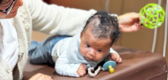 “When I first saw him, one of my main goals was educating his mom on positioning,” Kelly said. “Babies this young aren’t rolling yet, so movement depends entirely on the caregiver. I taught her how to incorporate stretches and positioning into their daily routines without disrupting their flow.”