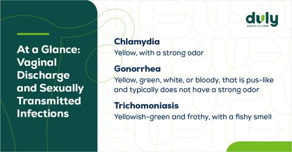Certain types of sexually transmitted infections (STIs) — infections that are transmitted between partners during sexual contact — can also cause vaginal discharge. The appearance of the discharge depends on which type of STI is the culprit.