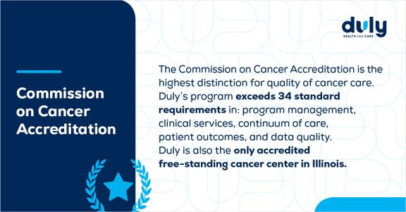 This reaccreditation signifies Duly’s unwavering dedication to our cancer care service line. At Duly, you and your family have access to quality care teams that are dedicated to providing the highest quality care and have the latest resources and tools to provide next-level treatment to those who need it.