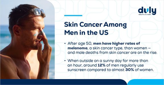 Men should look for new moles or spots, particularly ones that bleed, itch, or change color. If you notice any new spots, see a dermatologist for a full skin exam. When skin cancer is caught early, it’s very treatable.