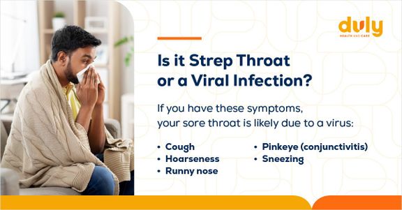 Both viruses and strep throat can cause symptoms in addition to a sore throat. Some of these symptoms overlap. For example, those white patches on the back of your tonsils (the lumps of tissue at the back of your throat that help fight infection) can be a sign of either a virus or strep throat.