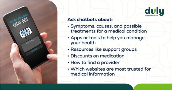 Like Dr. Google, Dr. Chatbot can be useful in the right situations – but it shouldn’t be your go-to source or take the place of a healthcare provider. Chatbots aren’t always accurate and they don’t know you like your provider knows you.
