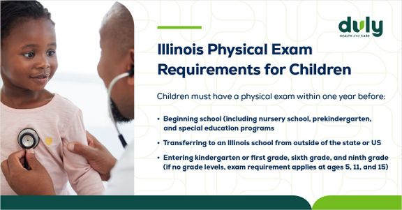 - Transfer Students: Moving to Illinois from another state? Your child will need a new physical exam to ensure they meet our state’s specific health requirements. We know relocating can be stressful, and we’re here to help make this part easier.