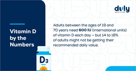 If you are at risk for vitamin D deficiency, you should talk to your Duly provider. They can give you options for different ways to supplement your vitamin D supply during the winter months (or at any time of year) such as over-the-counter or prescription strength supplements.