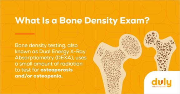 When you get a bone density scan, you can learn whether you have osteoporosis, which can be good information to share with your family. If you have a family history of osteoporosis, your Duly provider may recommend you get a bone density test earlier than 65 years old. By learning about your own medical history, you can contribute new information to your family’s medical history.