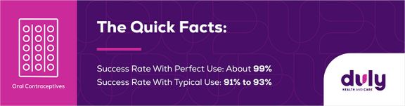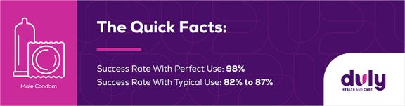 Note: “Success rate with perfect use” is the effectiveness of the method if used correctly, 100% of the time. “Success rate with typical use” reflects how the average person actually uses the method — which can be incorrect or inconsistent.