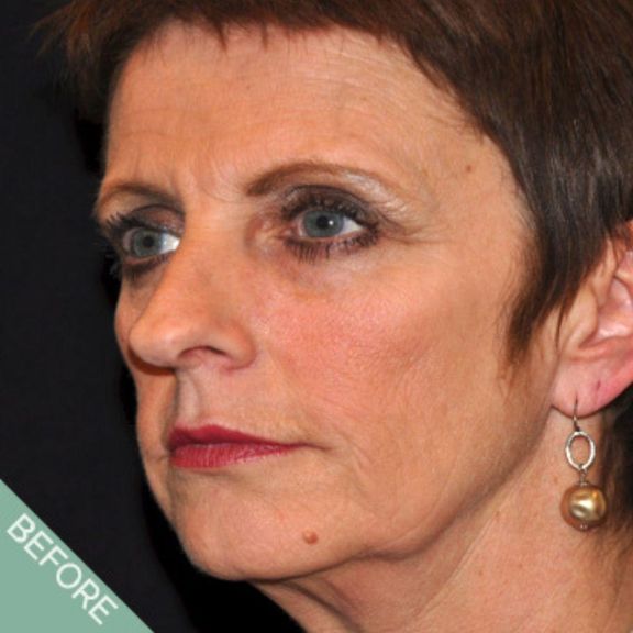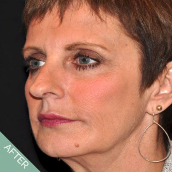 52 year old woman who was unhappy with her appearance; Liquid facelift done in the office using Botox, Radiesse, and Juvederm. Liquid Facelift performed by Dr. Danahey.